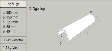 Đầu tiên ta phải nắm được thông số kỹ thuật của ngói như sau