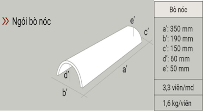 THÔNG SỐ KỸ THUẬT NGÓI BÒ NÓC ĐỊA TRUNG HẢI CỠ NHỎ