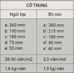 THÔNG SỐ NGÓI ĐỊA TRUNG HẢI CỠ TRUNG